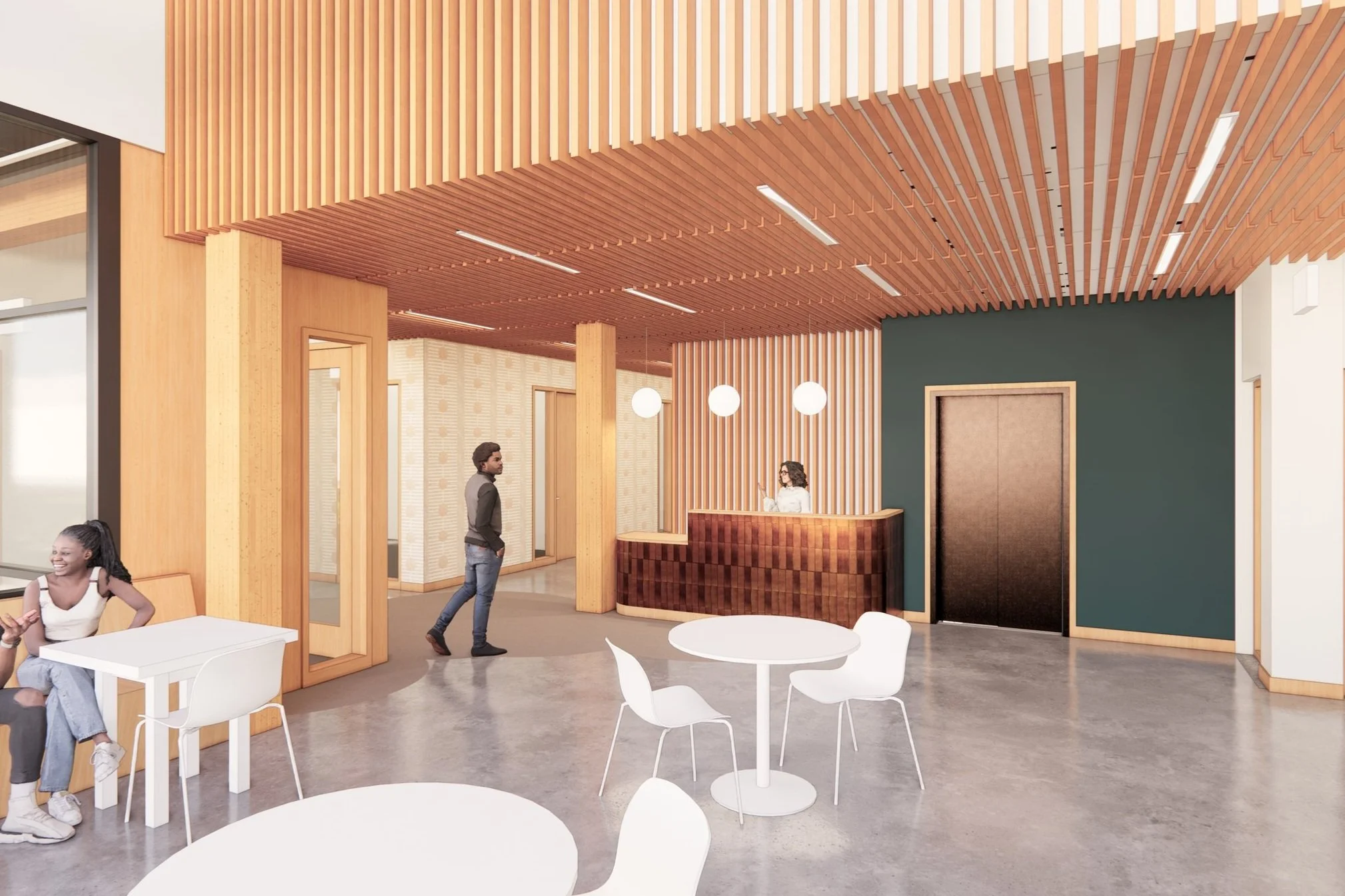 This mixed-use office and retail building is designed to focus on justice through philanthropy, advancing public policy, educational programs, community development and engagement, culturally specific training, bridge building, and business development.